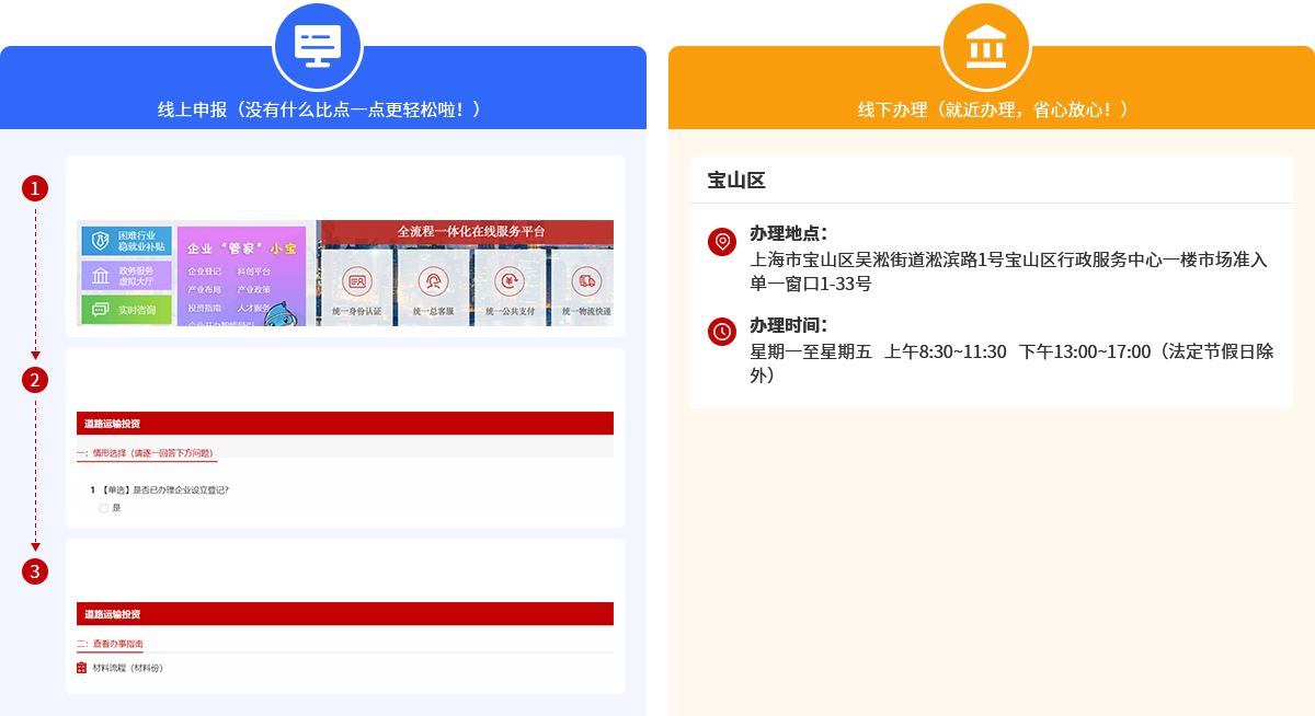 线上线下同步运行,我们也期待您体验线下服务的便利,目前已在宝山区退出线下体验服务。